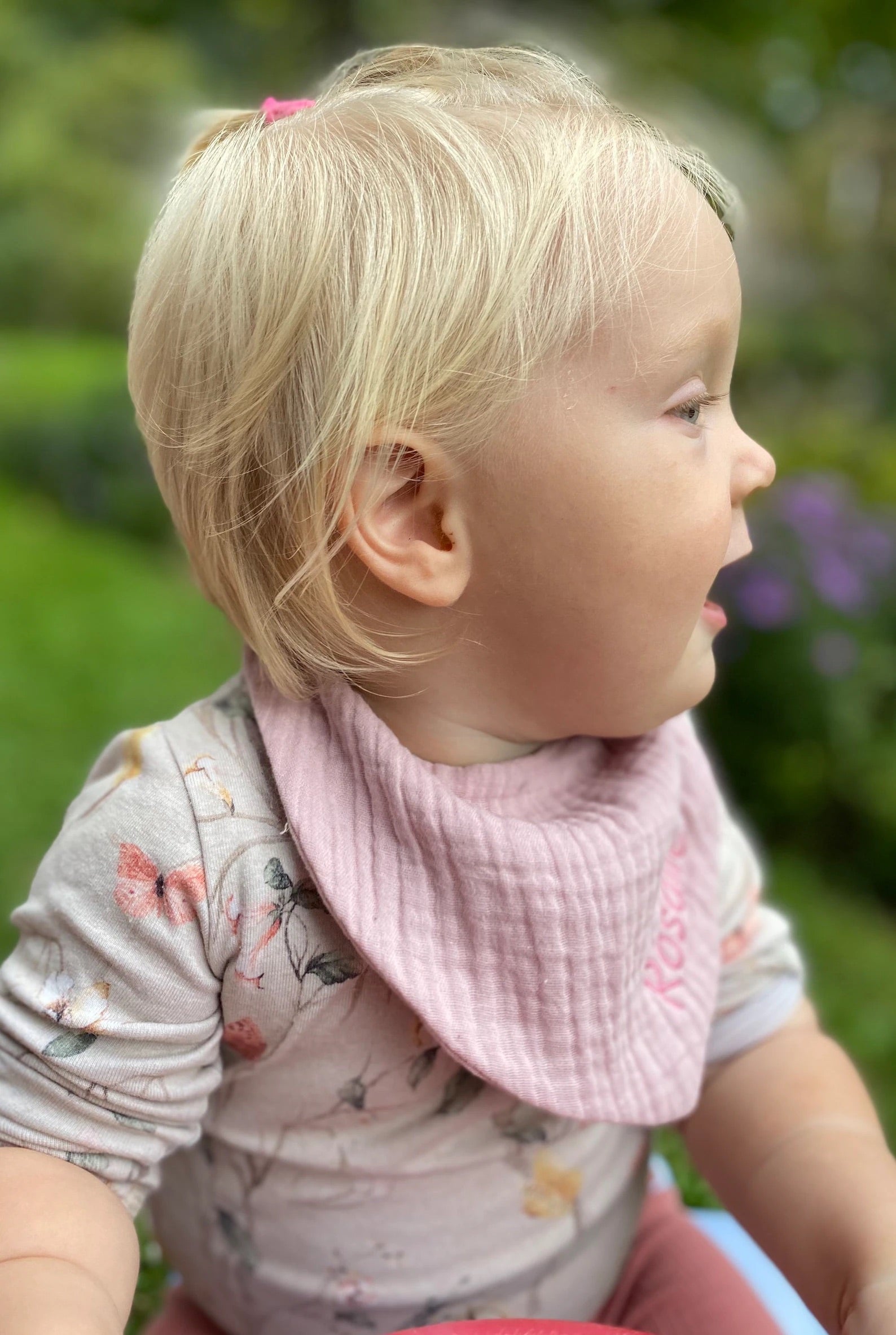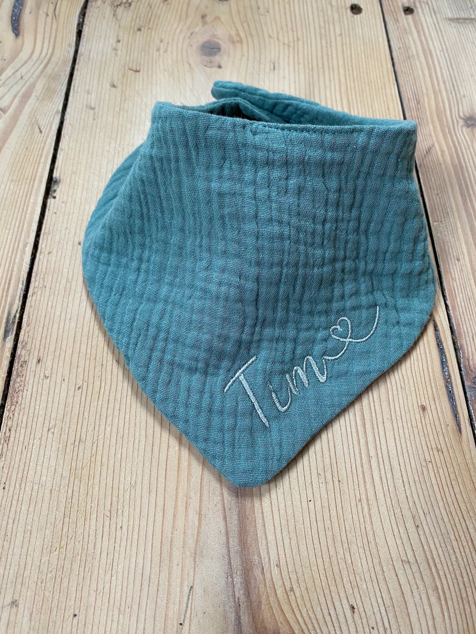 personalisiert - Lätzchen, Spucktuch, Dreieckstuch aus Bio Musselin, bestickt